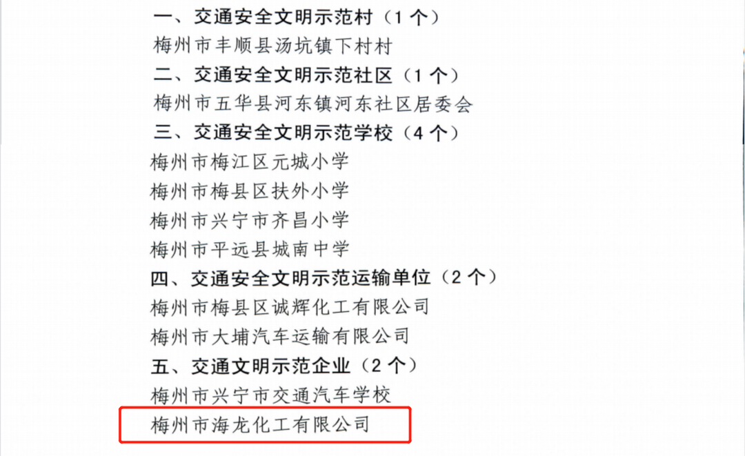 海龍化工積極響應(yīng)交通安全文明要求,自公司成立以來,深耕文明交通行動領(lǐng)域,致力于建設(shè)安全文明、和諧有序的道路交通環(huán)境工作,為營造文明和諧的城市環(huán)境貢獻力量。公司始終貫徹“安全第一,預(yù)防為主”的安全工作方針,注重交通安全文明建設(shè),通過加強教育、健全制度,強化監(jiān)督等措施,把交通安全作為公司安全生產(chǎn)中重要的一環(huán),認真貫徹落實,嚴(yán)格遵守交通法律法規(guī),實現(xiàn)了自公司成立以來無重大交通事故發(fā)生、無人員人身傷亡的目標(biāo),確保了生產(chǎn)經(jīng)營的正常運轉(zhuǎn)。