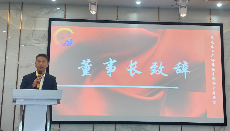 祥龍辭歲福澤厚,靈蛇納祥好運來。海龍化工2024年終總結(jié)表彰大會暨團(tuán)年晚宴于1月14日宴慶樓酒店盛大召開。會議旨在回顧公司的發(fā)展歷程及全面總結(jié)2024年工作成果,并為2024年取得優(yōu)異成績和為公司作出突出貢獻(xiàn)的管理人員、優(yōu)秀員工、優(yōu)秀團(tuán)隊等給予了表彰和頒獎。